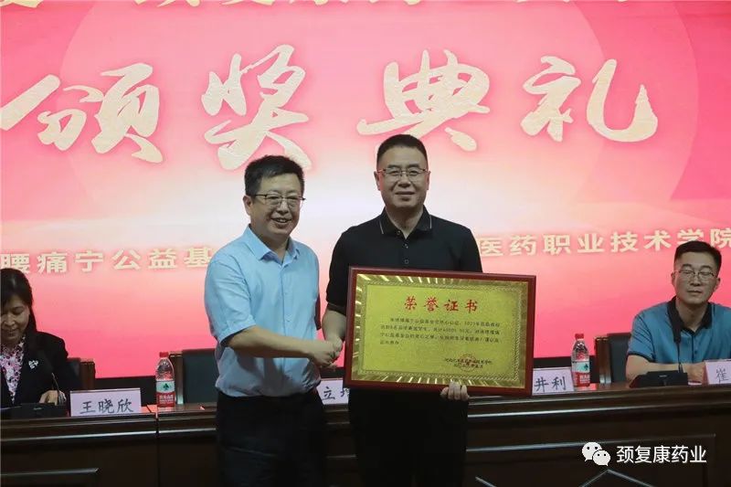 在兩校的頒獎(jiǎng)儀式上,劉井利秘書(shū)長(zhǎng)就與兩校的校企合作歷程做了回顧,贊譽(yù)了學(xué)校高質(zhì)量發(fā)展的成績(jī),肯定了學(xué)校培養(yǎng)人才的戰(zhàn)略舉措,希望學(xué)生努力學(xué)習(xí),取得更好的學(xué)習(xí)成績(jī)。同時(shí),劉井利就頸復(fù)康藥業(yè)的發(fā)展歷程、發(fā)展特色、取得的成就等做了簡(jiǎn)要介紹;并詳細(xì)說(shuō)明了企業(yè)成立腰痛寧公益基金會(huì)的初衷,以及多年來(lái)對(duì)公益事業(yè)的執(zhí)著與踐行。